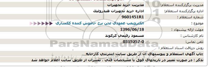 اداره برگزارکننده استعلام: اداره خرید تجهیزات هیدرولیک