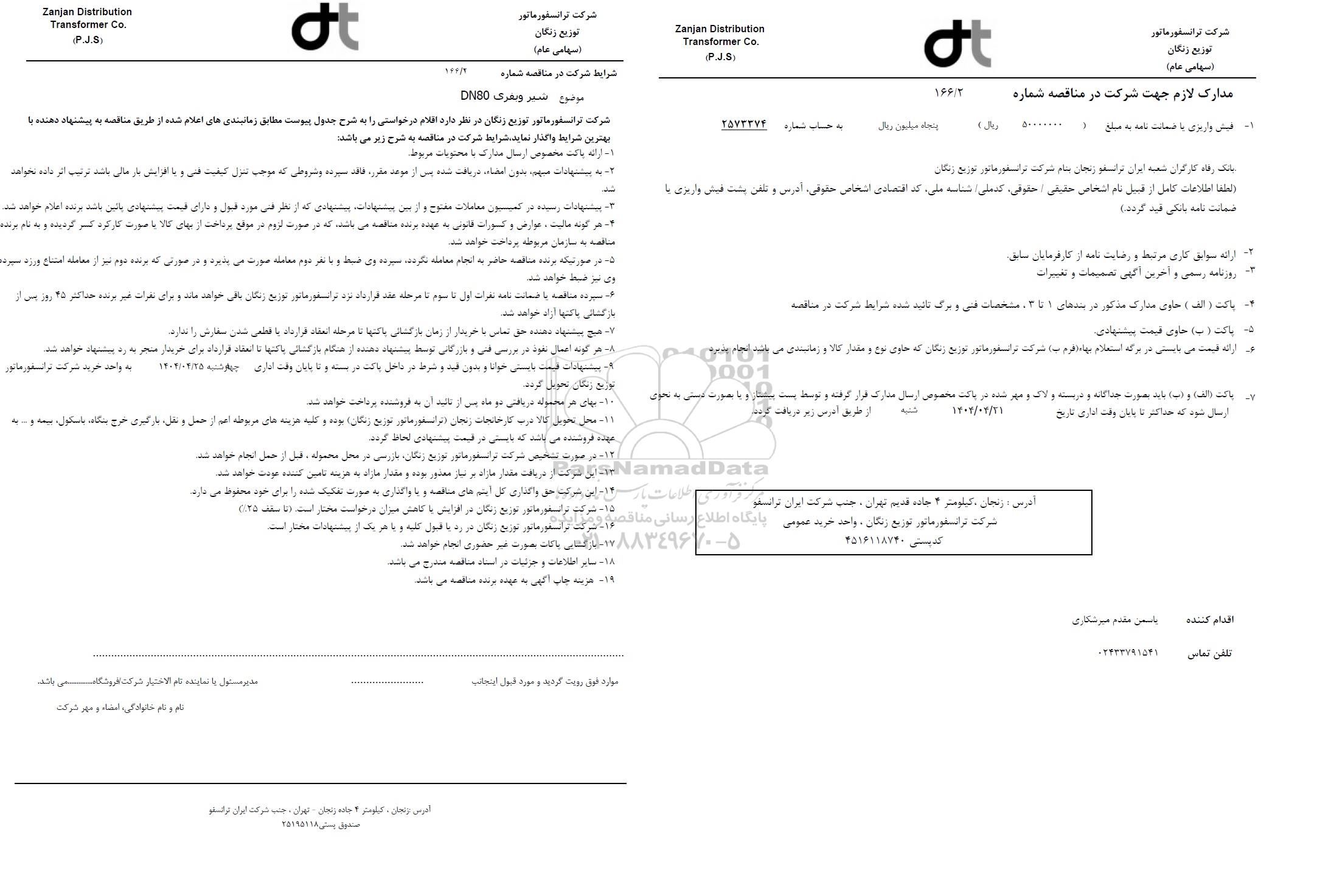 شرکت ترانسفورماتور توزیع زنگان در نظر دارد اقلام درخواستی را به شرح جدول پیوست مطابق زمانبندی های اعلام شده از طریق مناقصه به پیشنهاد دهنده با بهترین شرایط واگذار نماید شرایط شرکت در مناقصه به شرح زیر می باشد