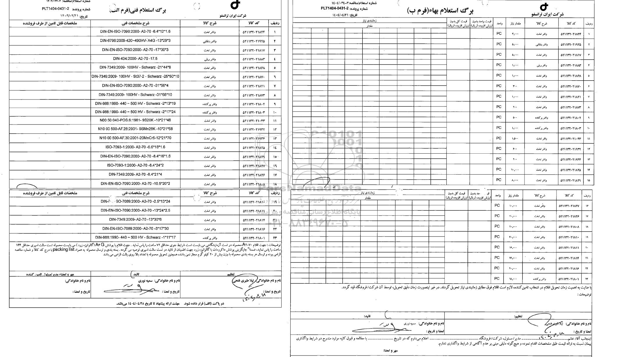 استعلام، مناقصه واشر تخت..., استعلام، مناقصه واشر تخت...