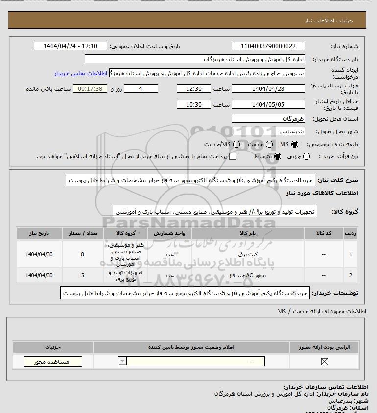 نام دستگاه خریدار:اداره کل اموزش و پرورش استان هرمزگان