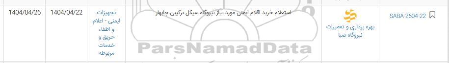 استعلام خرید اقلام ایمنی موردنیاز نیروگاه سیکل ترکیبی چابهار