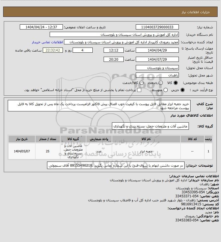نام دستگاه خریدار:اداره کل اموزش و پرورش استان سیستان و بلوچستان