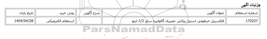 استعلام الکترونیکی فلکسیبل خرطومی استیل روکش حصیری گالوانیزه سایز 1/2 اینچ, استعلام الکترونیکی، فلکسیبل خرطومی استیل روکش حصیری گالوانیزه سایز 1/2 اینچ