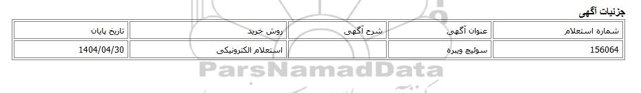 | 156064 | سوئیچ ویبره | استعلام الکترونیکی | 1404/04/30 |