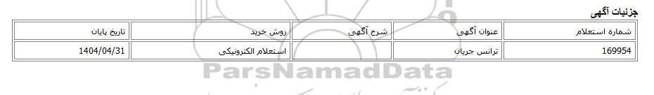 | 169954 | ترانس جریان | استعلام الکترونیکی | 1404/04/31 |