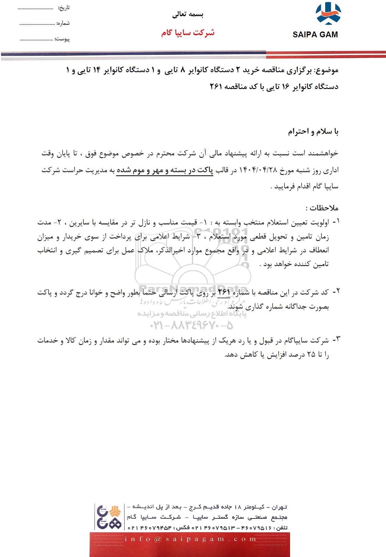 خواهشمند است نسبت به ارائه پیشنهاد مالی آن شرکت محترم در خصوص موضوع فوق ، تا پایان وقت اداری روز شنبه مورخ 1404.04.28 در قالب پاکت در بسته و مهر و موم شده به مدیریت حراست شرکت سایپا گام اقدام فرمایید .