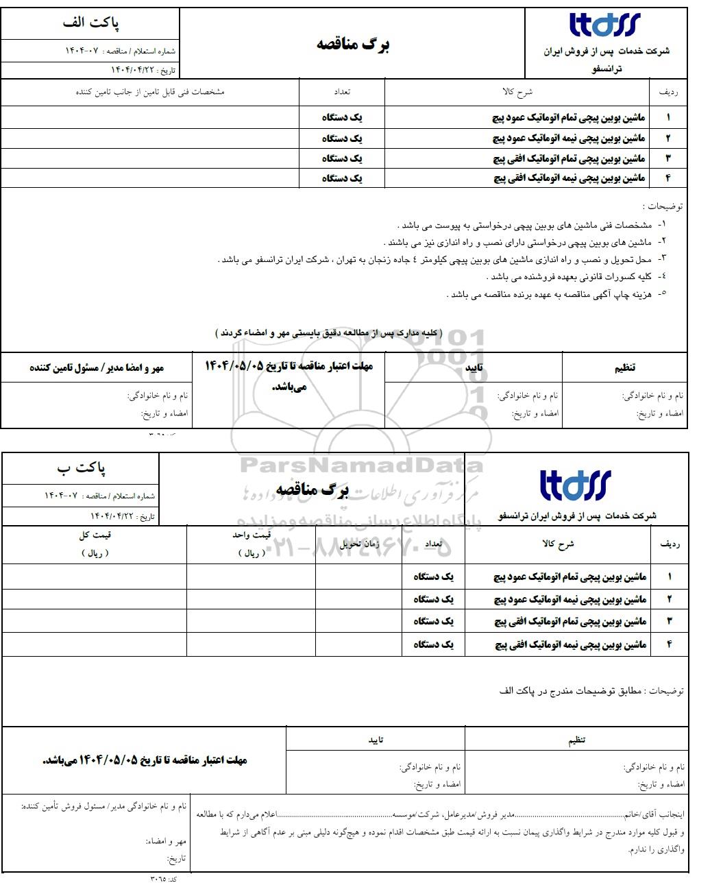 مهلت اعتبار مناقصه تا تاریخ 1404.05.05 می باشد.