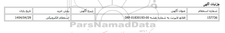 | 157736 | فلانچ لابیرنت به شماره نقشه DRP-01830193-00 | استعلام الکترونیکی | 1404/04/29 |