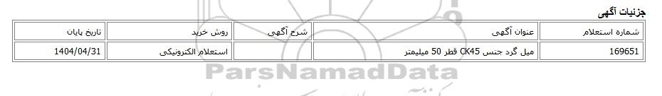 استعلام الکترونیکی میل گرد جنس CK45 قطر 50 میلیمتر, استعلام الکترونیکی، میل گرد جنس CK45 قطر 50 میلیمتر