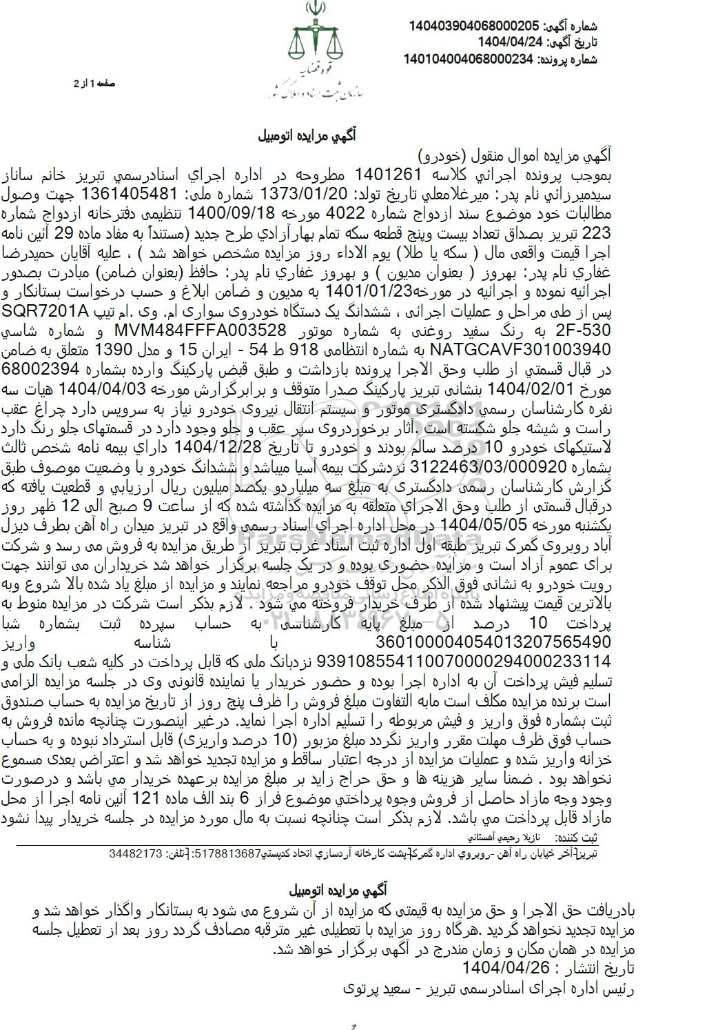 مزایده از ساعت 9 الی 12 روز یکشنبه مورخ 1404.5.5
