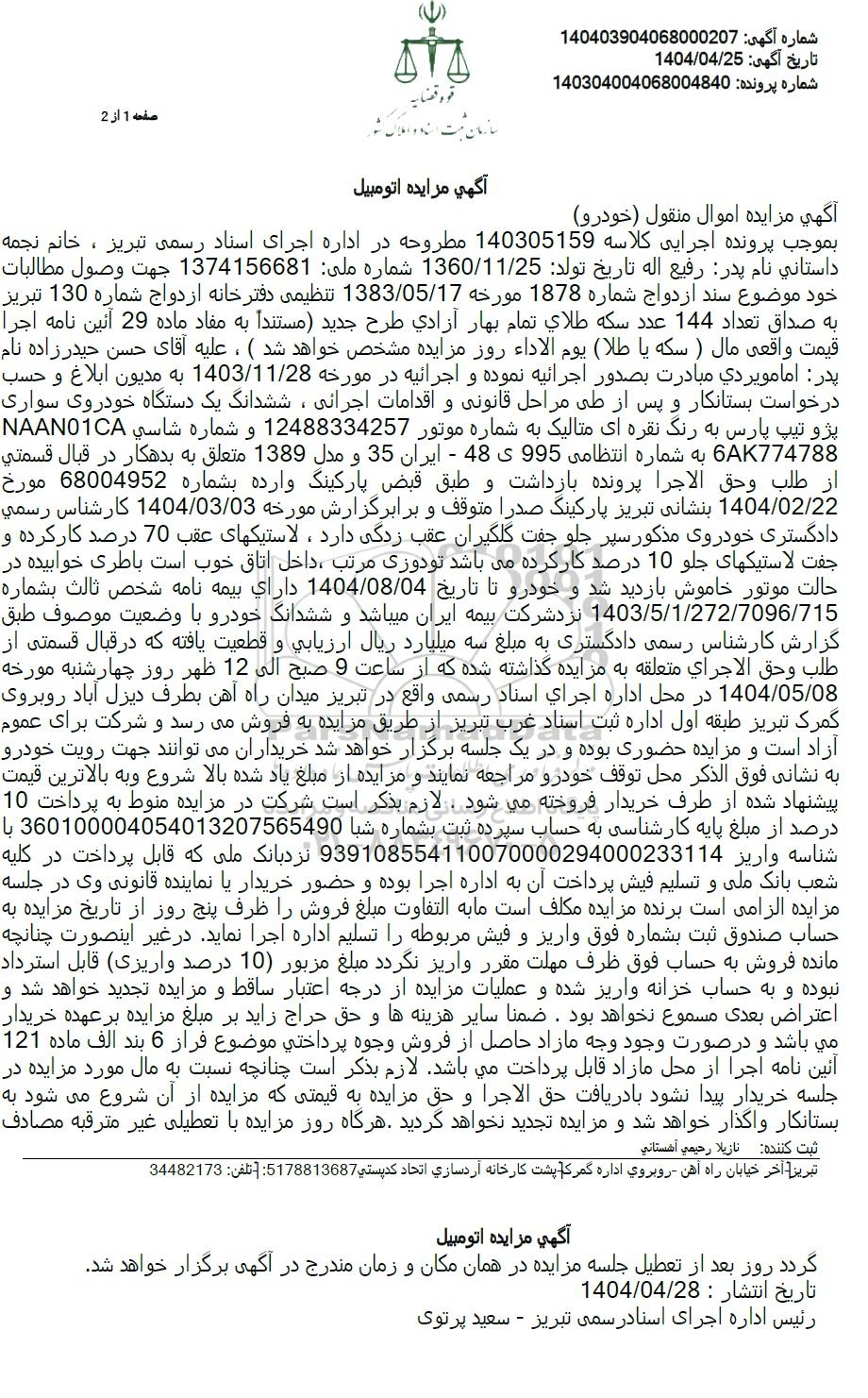 اگهی مزایده اتومبیل