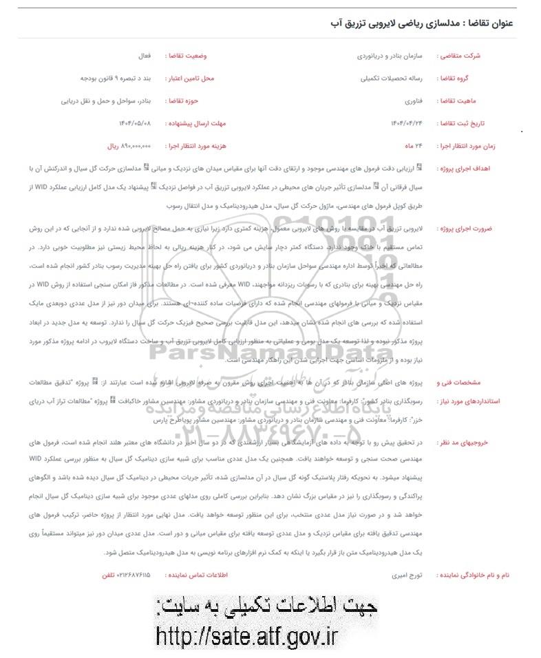 شرکت متقاضی : سازمان بنادر و دریانوردی