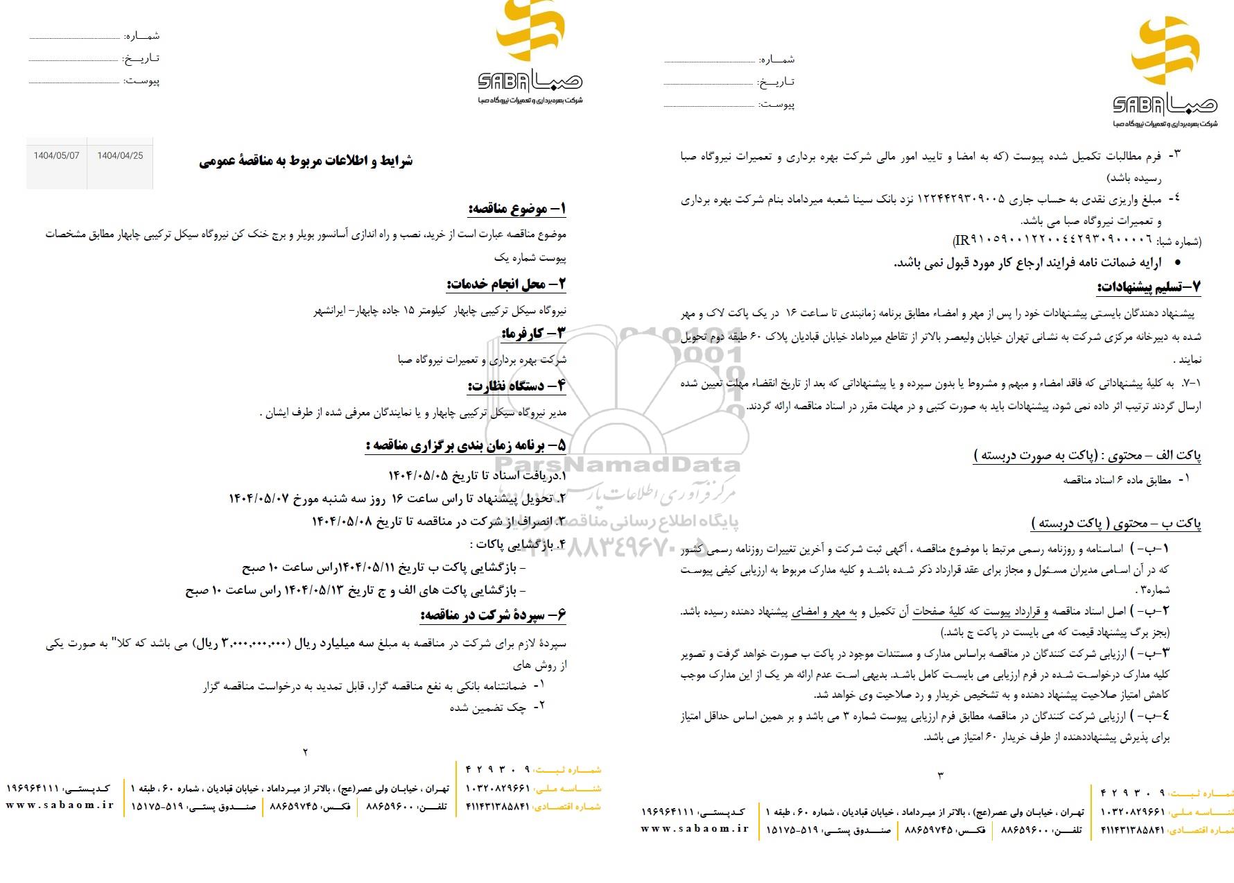 مناقصه خرید، نصب و راه اندازی آسانسور بویلر و برج خنک کن نیروگاه ..., مناقصه خرید، نصب و راه اندازی آسانسور بویلر و برج خنک کن نیروگاه ...