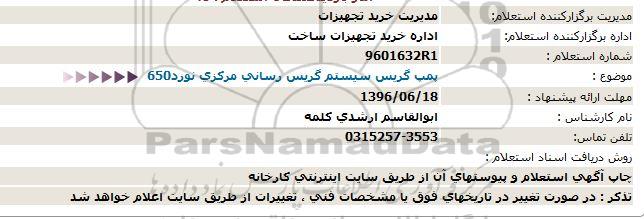 استعلام پمپ گریس سیستم گریس رسانی, استعلام، استعلام پمپ گریس سیستم گریس رسانی