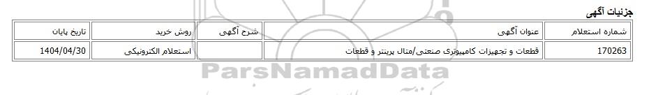 استعلام الکترونیکی قطعات و تجهیزات کامپیوتری صنعتی/متال پرینتر و قطعات, استعلام الکترونیکی، قطعات و تجهیزات کامپیوتری صنعتی/متال پرینتر و قطعات