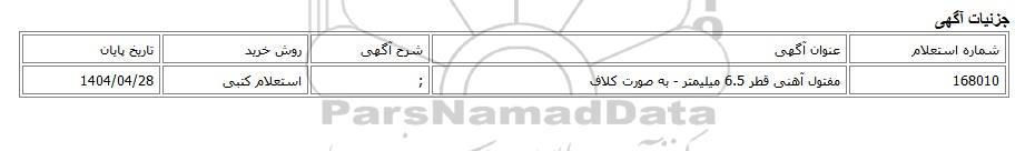 168010مفتول آهنی قطر 6.5 میلیمتر - به صورت کلاف;استعلام کتبی1404/04/28