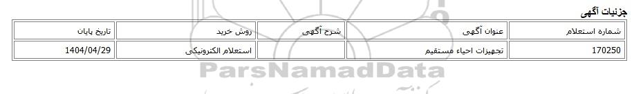 | 170250 | تجهیزات احیاء مستقیم | استعلام الکترونیکی | 1404/04/29 |