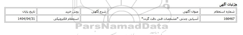 | 166467 | آسیابی چدنی *مشخصات فنی دقت گردد* | استعلام الکترونیکی | 1404/04/31 |