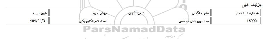 | 169901 | ساندویچ پانل سقفی | استعلام الکترونیکی | 1404/04/31 |