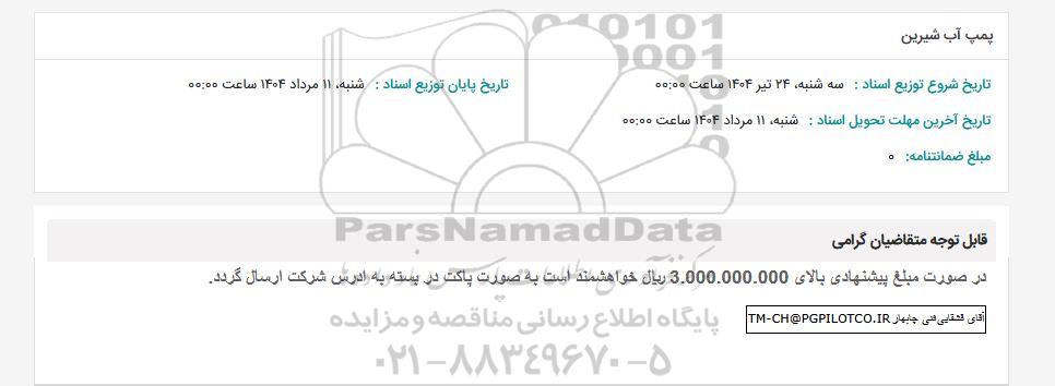 برای شرکت در مناقصه حتما از تصویر آگهی در سایت پارس نماد داده ها استفاده نمایید