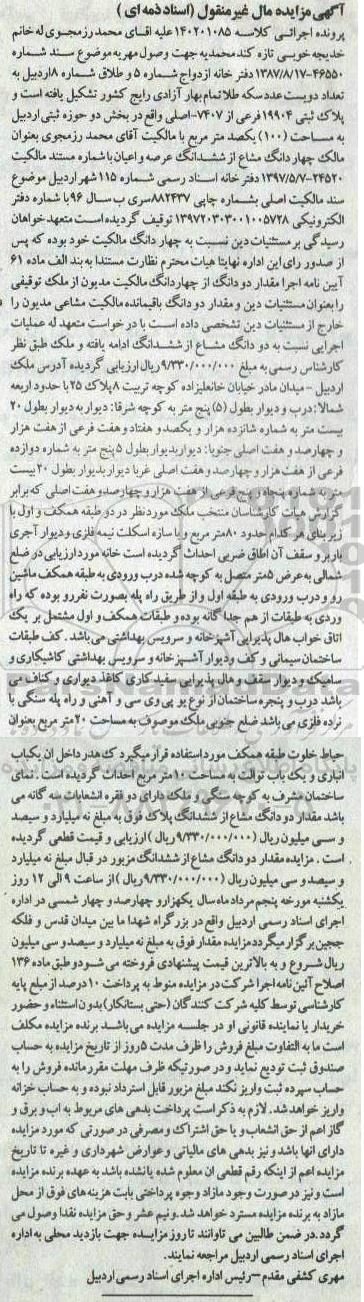 مزایده فروش پلاک ثبتی 19904 فرعی از 7407 اصلی , مزایده فروش پلاک ثبتی 19904 فرعی از 7407 اصلی