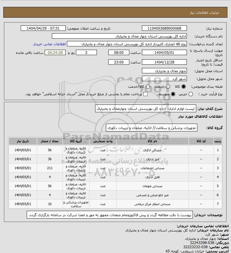 شرح کلی نیاز: لیست لوازم اداری، اداره کل بهزیستی استان چهارمحال و بختیاری