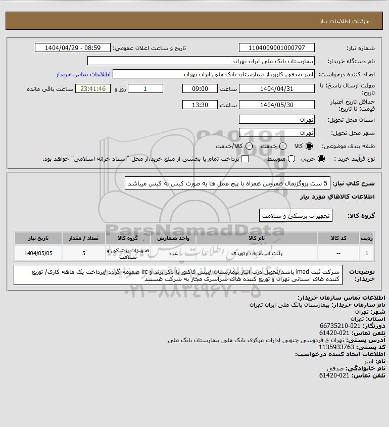 نام دستگاه خریدار:بیمارستان بانک ملی ایران تهران