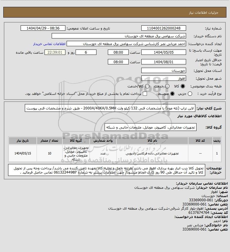 نام دستگاه خریدار:شرکت سهامی برق منطقه ای خوزستان