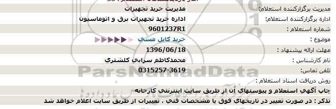 اداره برگزارکننده استعلام: اداره خرید تجهیزات برق و اتوماسیون