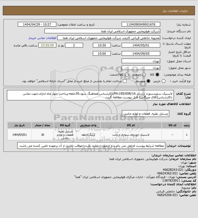 نام دستگاه خریدار:شرکت هواپیمایی جمهوری اسلامی ایران هما