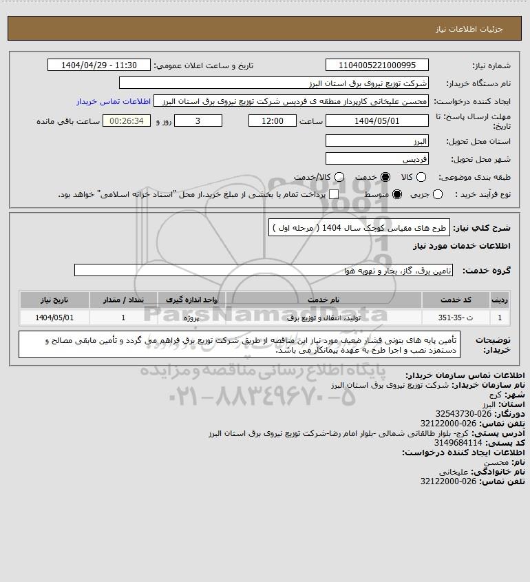 شرح کلی نیاز: طرح های مقیاس کوچک سال 1404 ( مرحله اول )