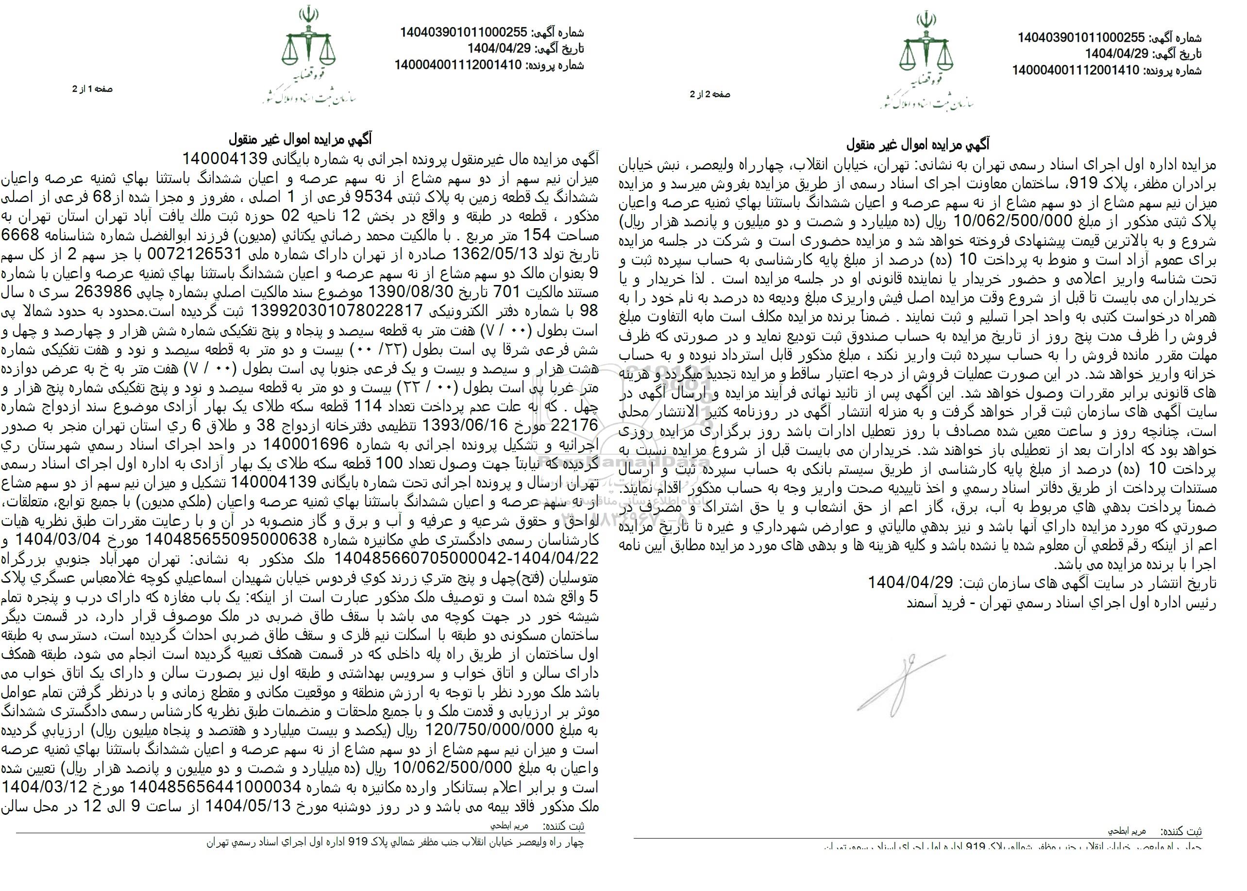 شماره آگهی: 140403901011000255