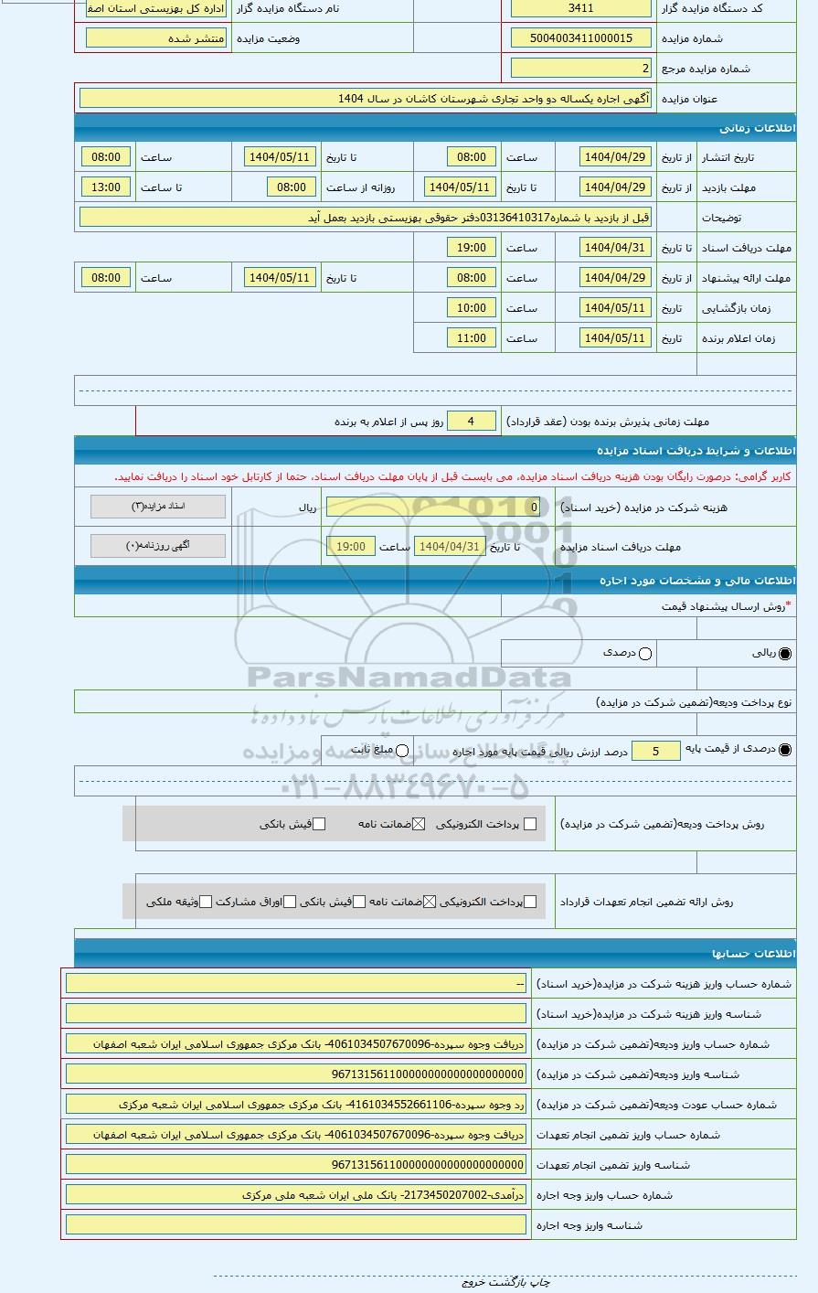 شماره مزایده5004003411000015