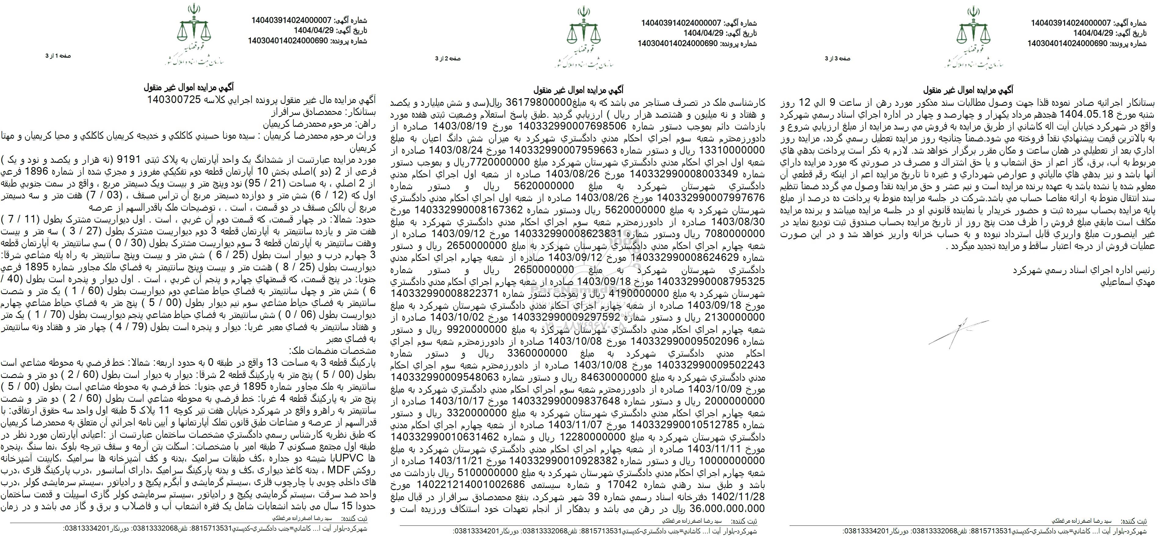 مزایده فروش یک واحد آپارتمان به پلاک 9191 فرعی از دو اصلی به مساحت 95.21 مترمربع