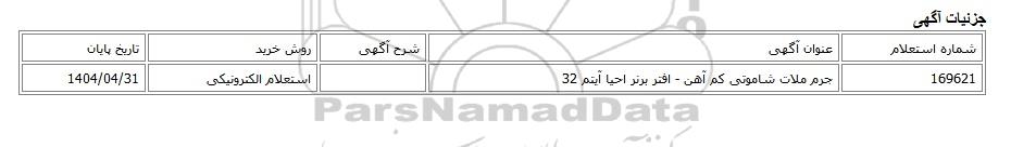 169621جرم ملات شاموتی کم آهن - افتر برنر احیا آیتم 32استعلام الکترونیکی1404/04/31