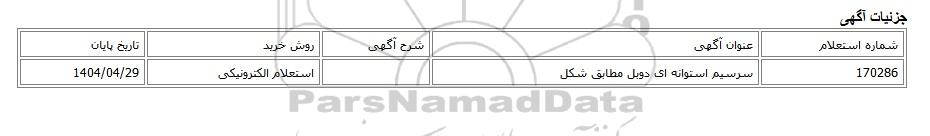 | 170286 | سرسیم استوانه ای دوبل مطابق شکل | استعلام الکترونیکی | 1404/04/29 |