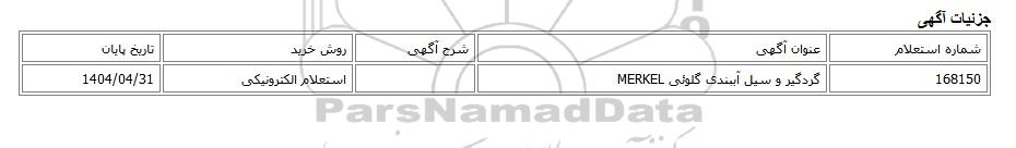 | 168150 | گردگیر و سیل آببندی گلوئی MERKEL | استعلام الکترونیکی | 1404/04/31 |