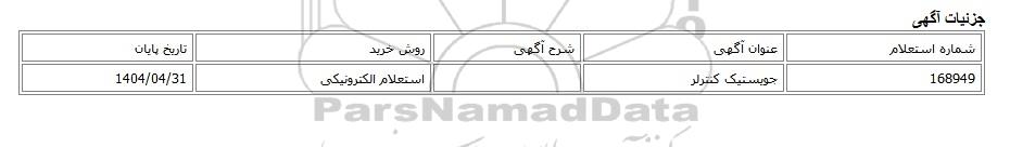 168949جویستیک کنترلراستعلام الکترونیکی1404/04/31