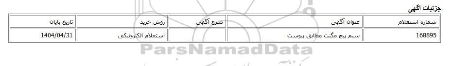 | 168895 | سیم پیچ مگنت مطابق پیوست | استعلام الکترونیکی | 1404/04/31 |