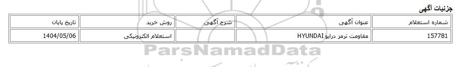 | 157781 | مقاومت ترمز درایو HYUNDAI | استعلام الکترونیکی | 1404/05/06 |