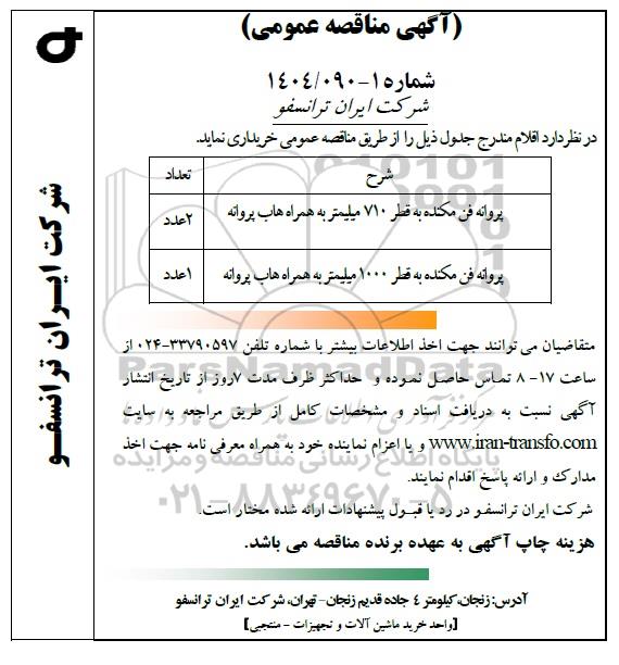 شرکت ایران ترانسفو در نظر دارد اقلام مندرج جدول ذیل را از طریق مناقصه عمومی خریداری نماید .