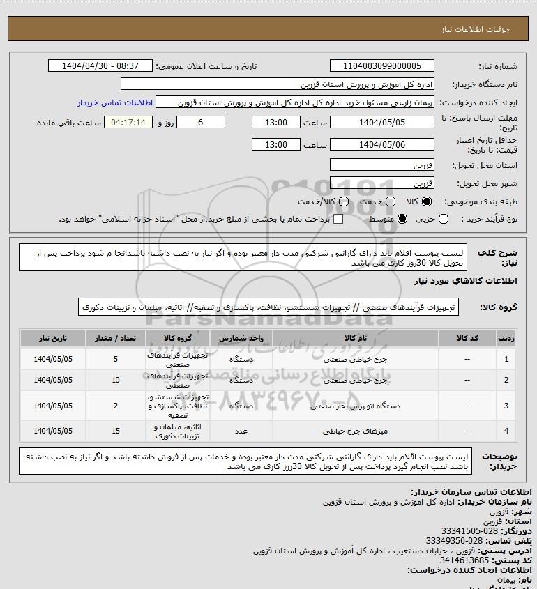 نام دستگاه خریدار:اداره کل اموزش و پرورش استان قزوین