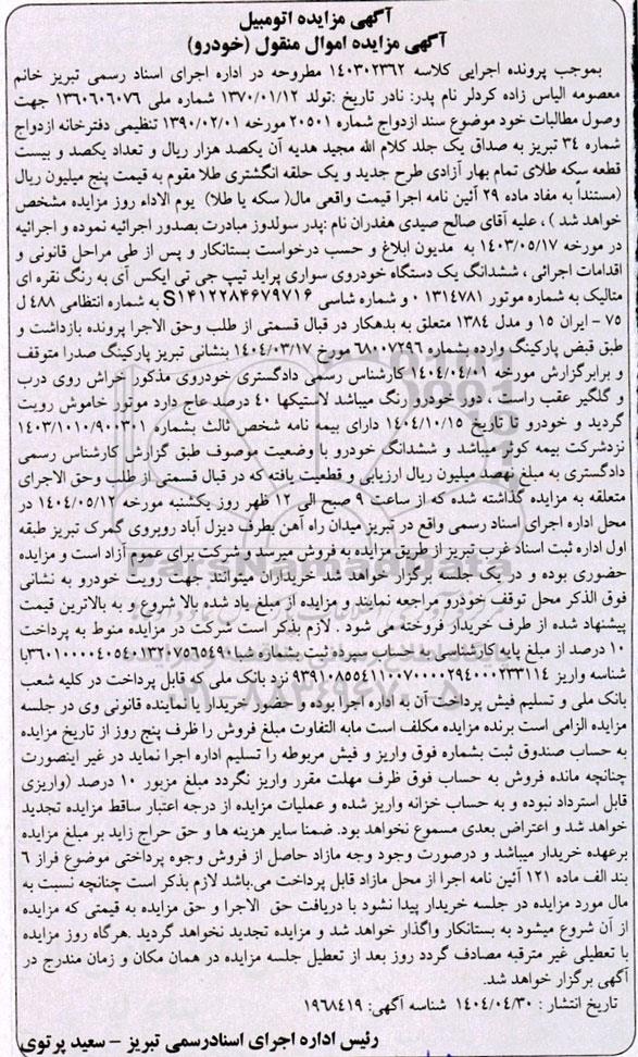 تاریخ مزایده ساعت 9 صبح الی 12 ظهر روز یکشنبه مورخه 1404.05.12