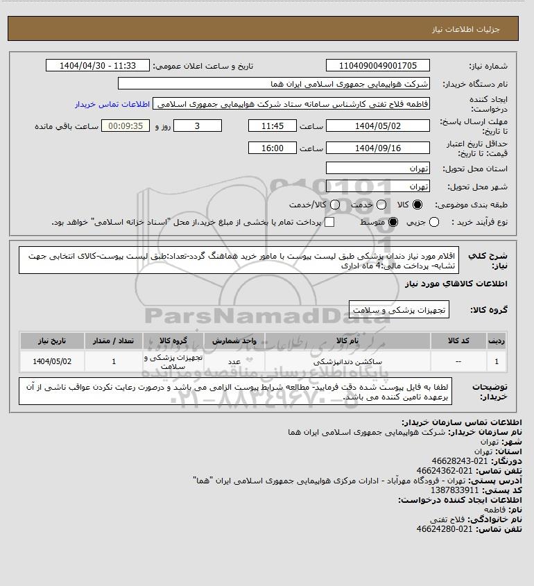شرح کلی نیاز: اقلام مورد نیاز دندان پزشکی طبق لیست پیوست با مامور خرید هماهنگ گردد-تعداد:طبق لیست پیوست-کالای انتخابی جهت تشابه- پرداخت مالی:4 ماه اداری