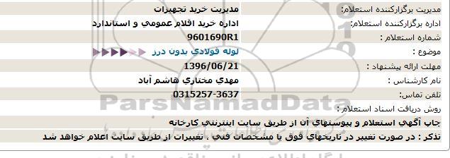 استعلام لوله فولادی بدون درز , استعلام, استعلام لوله فولادی بدون درز