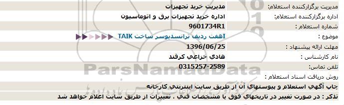 اداره برگزارکننده استعلام: اداره خرید تجهیزات برق و اتوماسیون