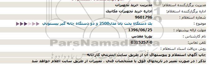 اداره برگزارکننده استعلام اداره خرید تجهیزات مکانیک