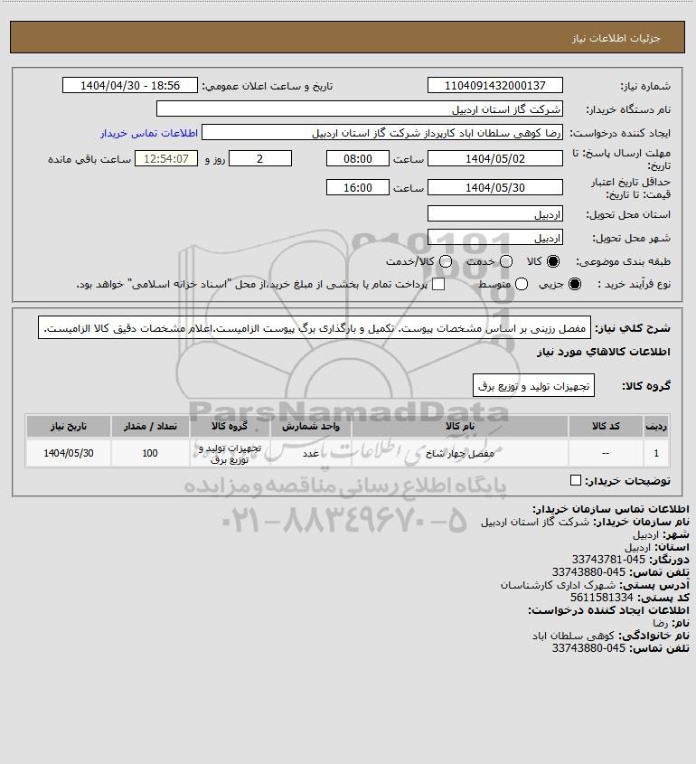 نام دستگاه خریدار:شرکت گاز استان اردبیل