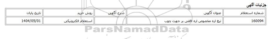 | 160094 | تیغ اره مخصوص اره افقی بر جهت چوب | استعلام الکترونیکی | 1404/05/01 |