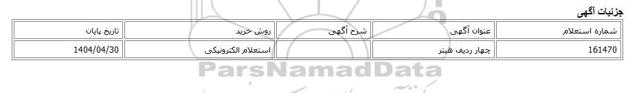 161470چهار ردیف هیتراستعلام الکترونیکی1404/04/30